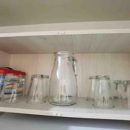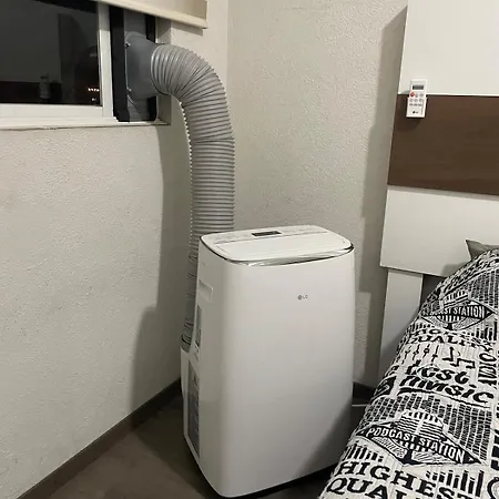 The apartment has a fully equipped kitchen, and comforts such as an air conditioner.